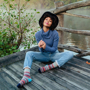 Our blend features Merino wool, complemented by additional supportive fibers to enhance shape and fit. Merino wool brings its natural softness, breathability, and moisture-wicking abilities to the table, while elastane, polyester, and acrylic add a touch of flexibility and durability.